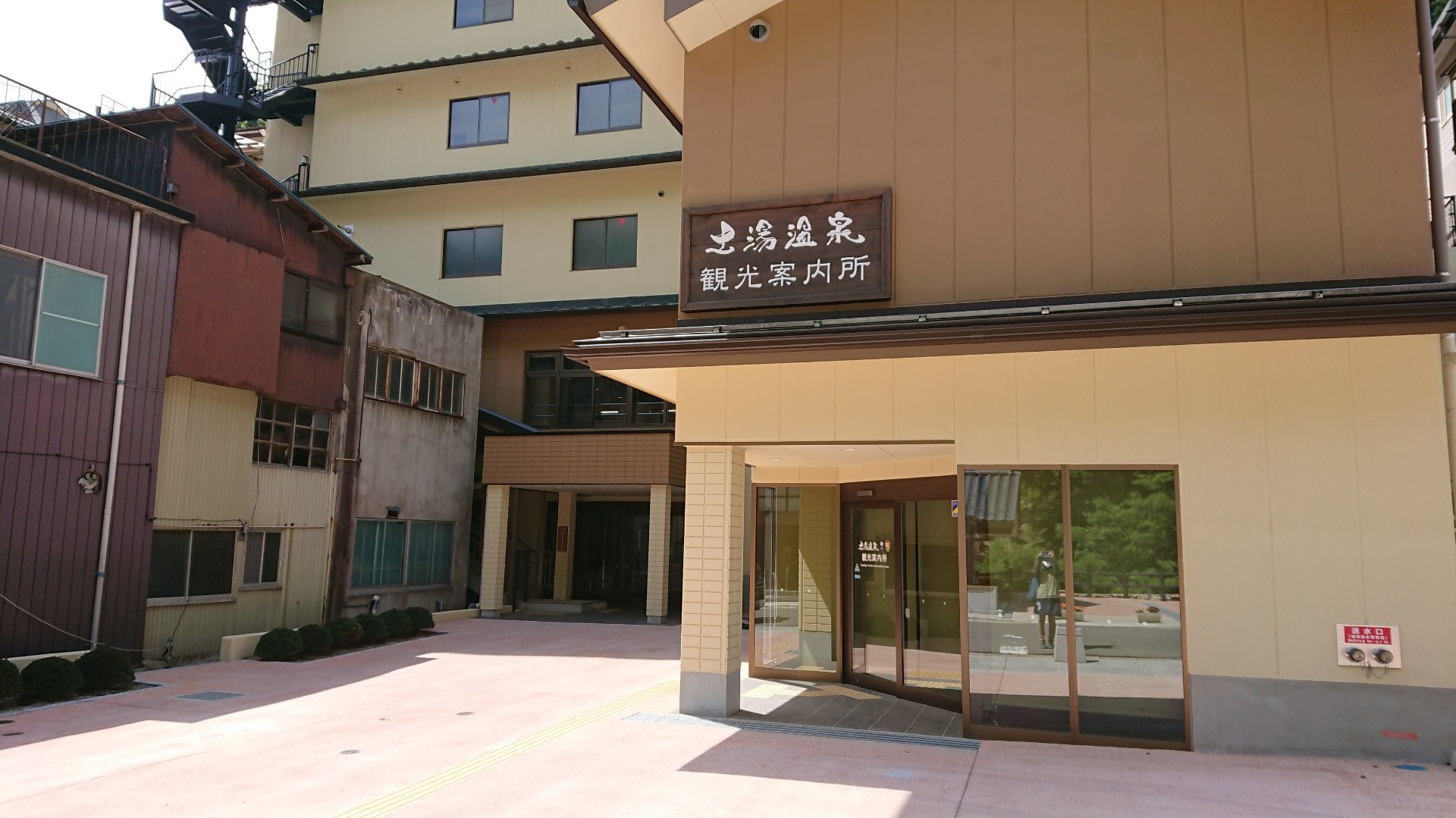 おはようございます。本日は晴れ!外気温も27℃程度まで上がるようでうだる暑さですね。熱中症に気を遣う季節がやってまいりました。さて、今回はかねてより進めておりました「まちおこしセンター 湯楽座(ゆらくざ)」のご紹介です。湯楽座は元旅館の建物を再利用しており、一階に土湯温泉観光協会「観光案内所」と地場産品販売コーナーが、二階にはレストランが入る複合施設です。宿泊室もあり、今のところは素泊まりのみのご宿泊で一泊一人四千円でございます。外観は、土湯の景観に合わせたクリーム色とブラウン色を基調とした落ち着いた雰囲気で、鉄筋コンクリート造りの宿泊スペースも含めた六階建てです。延べ床面積は約二千五十平方メートル。こちらの営業時間は、午前九時から午後九時までとのことです。