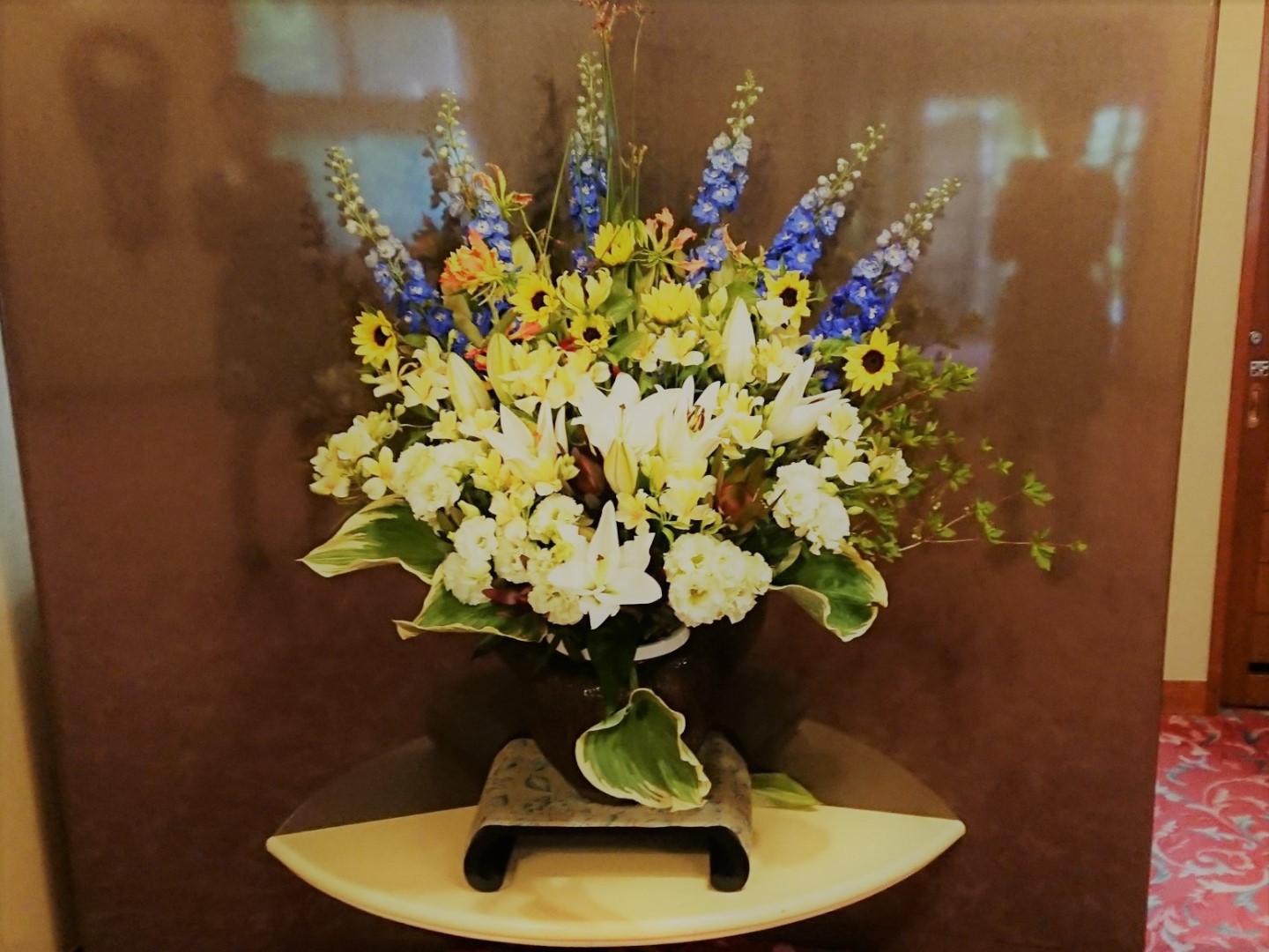 こんにちは。早速ですが、当館のロビーには季節によって様々な種類の花が飾られております。おおよそ1週に1度の頻度で交換されるそれは、荒井にある「さばら生花」さんにお願いして作って頂いております。さばらさんが丹精込めて育てられてた大切なお花とともに、皆様のお着きをお待ちしております。