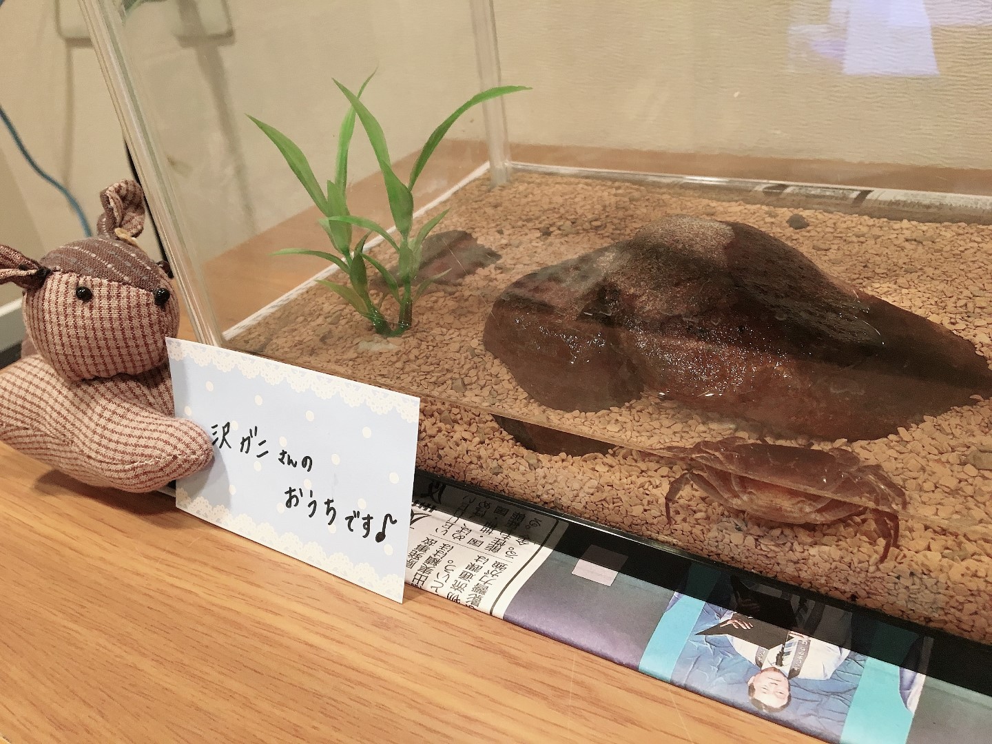 こんにちは。暖かい日差しが降り注ぐ市内の小学校では、運動会が開催されたと伺いました。子供達の元気な姿に、こちらも元気パワーをもらっています。さて今回は、当館の小さなお友達、沢ガニさんを紹介します。約一年前に土湯温泉にいた沢ガニさんです。とても恥ずかしがり屋さんで、普段は石の陰に隠れているのですが、この日は暖かい天気に誘われて、表に顔を出してくれました!当館のフロントに沢ガニさんのお家があります。ぜひ当館の小さなお友達に会いに来てくださいませ!スタッフ、沢ガニさんさん一同お待ちしております。
