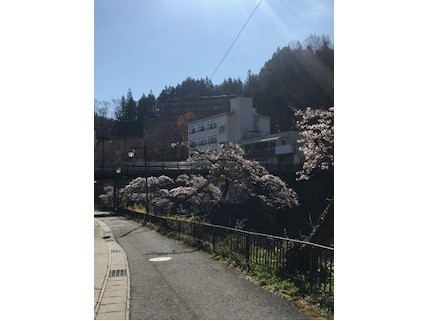こんにちは。朝からとっても暖かい土湯温泉です。昨日は昼間に20℃となり半袖で過ごす人も多く見受けられる程の気温でした。さて、このところの暖かい気温でようやく土湯温泉内の桜が開花しまして只今7~8分咲きといったところでございます。写真は当館の入り口から駐車場までの坂道に咲いている桜です。満開になると迫力もあり素敵なんです。そして散り始めの風がある日は桜吹雪…(*^-^*)気温も高いので今週末には満開を迎え来週半ばくらいまでは見頃ではないかと思っております。福島市内では葉桜ですが土湯温泉内は今ですよ~☆観光案内所前の椅子でゆったりと桜を見ながら土湯サイダーで喉を潤すのもお勧めです(^^♪ぜひ見にいらしてくださいね。