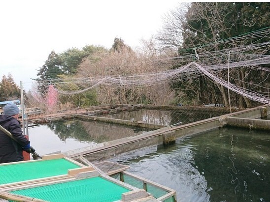 こんにちは。本日は、12時頃より雨から雪に様相を変え牡丹雪がちらついた一日となりました。最高気温は6℃と控えめな、寒さを感じる日でございました。さてこの度は、当館より車で約30分の【大玉養鱒場】にお邪魔を致して参りました。こちらは、当館にて使わせていただいております名物【岩魚】の生産地でございます。大玉村の中でも山の上腹にありますので、なかなか向かう機会はないかと思います。しかしながら最適に管理された養殖場では、多くの岩魚たちが元気に泳いでまいりました。軍隊行動のように規律正しい岩魚の動きは、見ていて飽きは来ませんね。そうしてここから当館へと運び、自家の生簀にてひと休みをすると、お客様のもとへと美味しい岩魚料理がお届けできるのです。今回は、生産者様の写真がありませんが、次回はのさせて頂きますのでお楽しみにお待ちくださいませ。