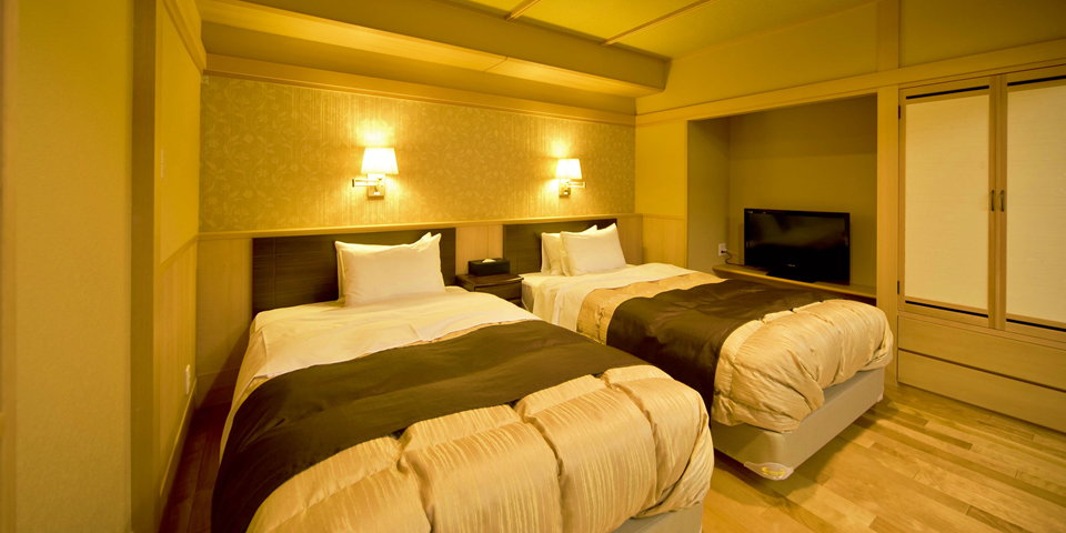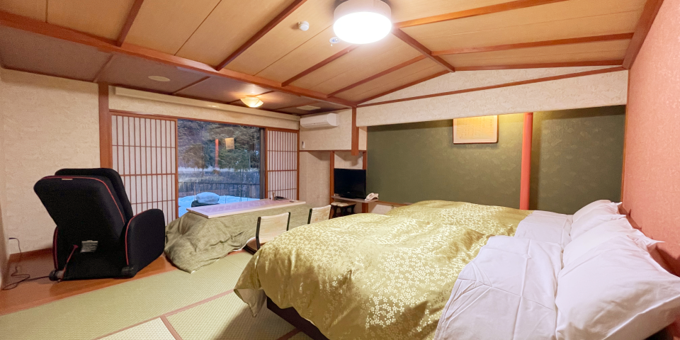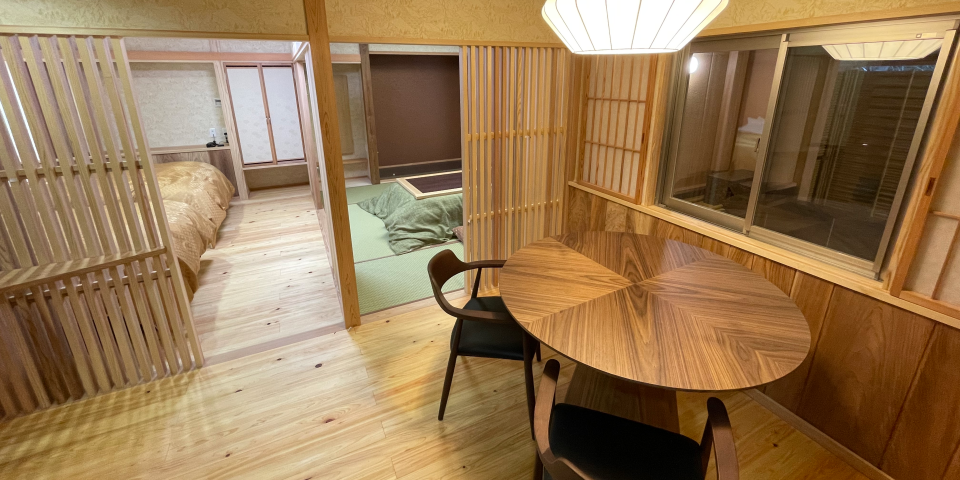 2022年3月のリニューアルで新たに誕生した和洋室です。福島県産の杉材を柱や建具、床材に使用した木の質感をお楽しみいただける客室です。