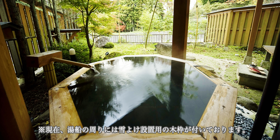 四季折々で表情を変える庭や、冬期は天候にもよりますが雪見風呂を満喫できます。しんしんと降る雪を眺めながらゆっくり浸かる温泉はまた格別です。あったか温泉で、のんびりお過ごし頂ければ幸いです。