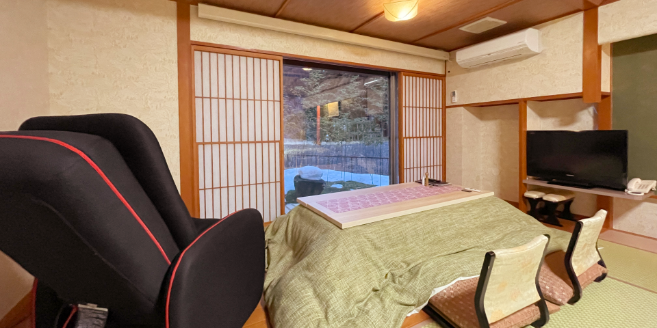 | 設備 | 露天風呂(みかげ石)・洗浄機能付きトイレ・掘りごたつ・畳床暖房・無線LAN |
