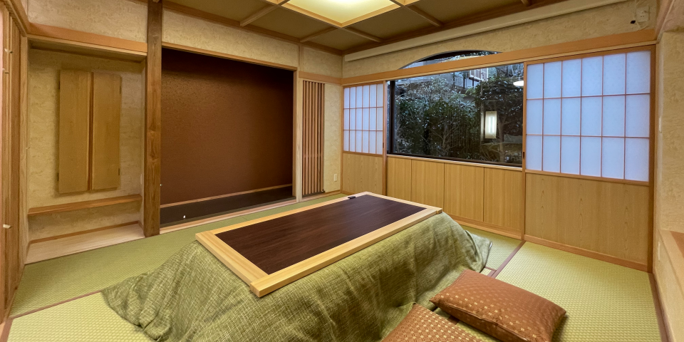 | 設備 | 専用庭・露天風呂(ひのき)・シャワールーム・洗浄機能付きトイレ・掘りごたつ・畳床暖房・無線LAN・マッサージチェア・天井照明内臓プロジェクター及びスクリーン |